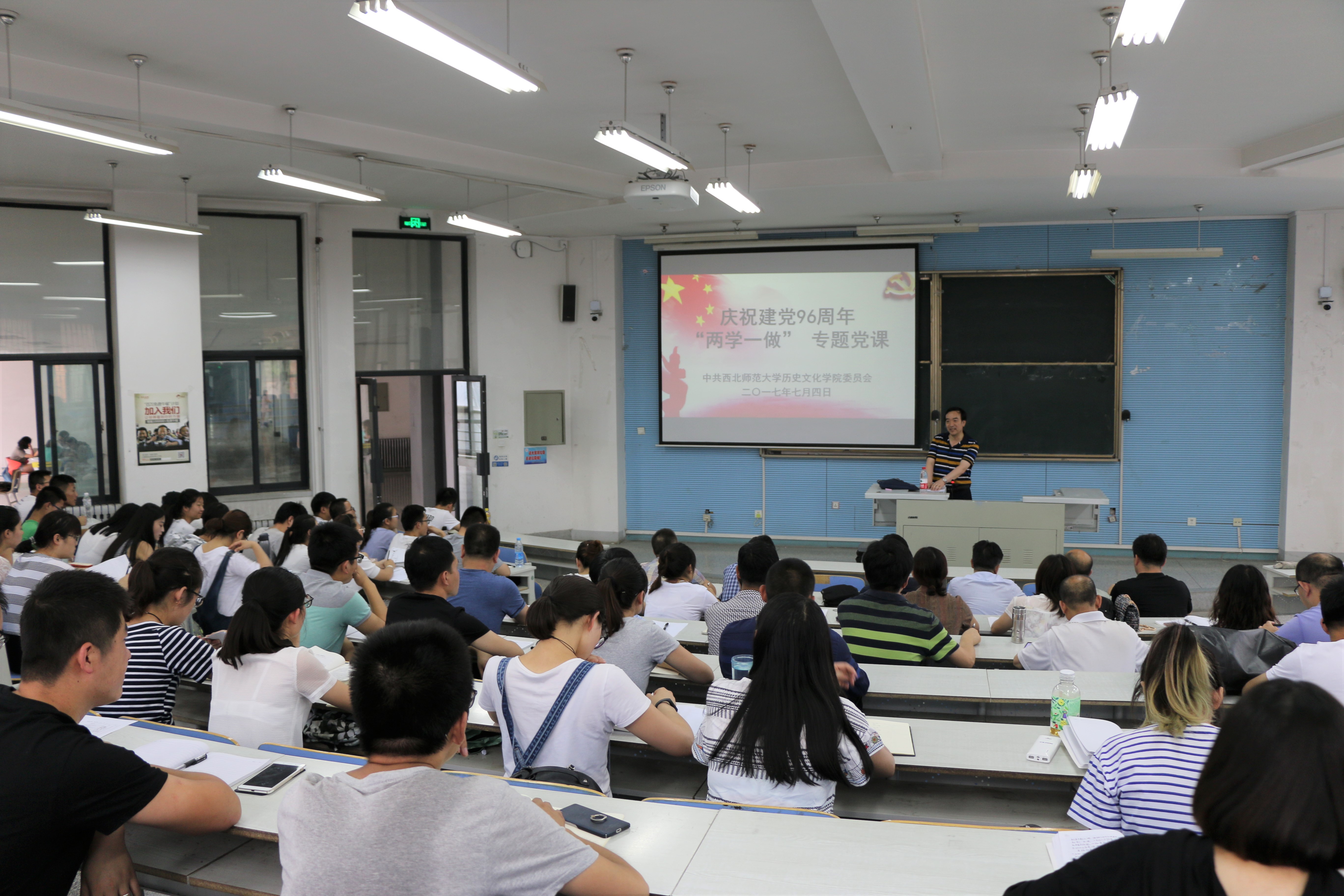 为迎接庆祝中国共产党建党96周年,学习贯彻我省第十三次党代会精神,喜迎党的十九大胜利召开,深入落实“两学一做”教育实践活动常态化。7月4日下午,我校党委常委、副校长田澍教授结合党的纪律、当前我省的发展核心问题以及我校学科建设、基层党建、青年学生发展等问题为我院全体党员上了一节深刻的专题党课。