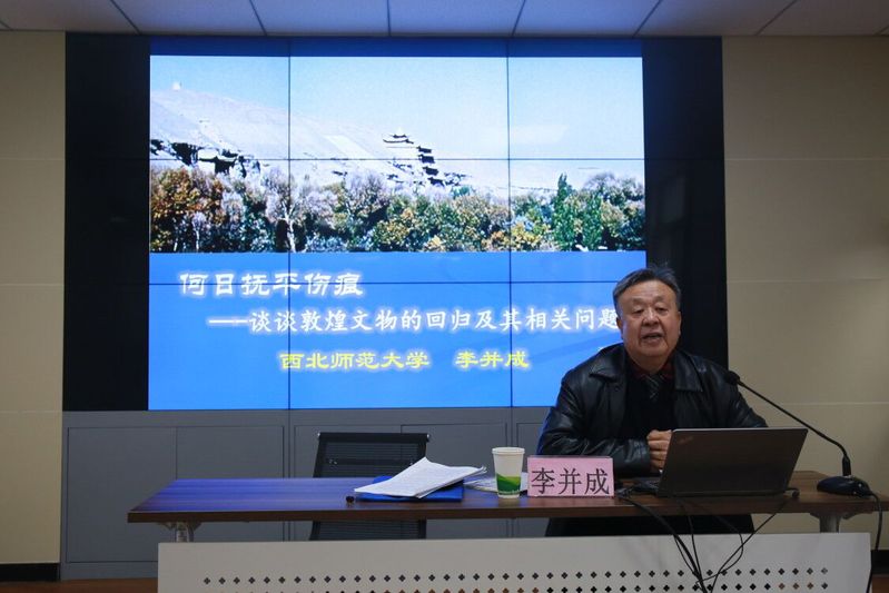 2019年12月25日,西北师范大学敦煌学研究所所长、4188云顶集团研究员、博士生导师李并成在教学7号楼317报告厅作了题为《何日抚平伤痕——有关敦煌文物的回归及其相关问题》的讲座。学院教师僧海霞、李顺庆、张之佐、张国源、鲁宸伊及本科生、研究生、博士生等80余人参加了此次讲座。