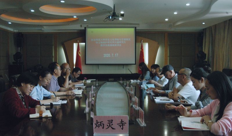 2020年7月17日,我院文物与博物馆硕士教育中心主任黄兆宏老师、秦丙坤老师、李顺庆老师带领文博专业实习研究生,赴炳灵寺文物保护研究所开展专业实习工作,并与炳灵寺文物保护研究所所长贺延军、副所长曹学文及各部门负责人进行了座谈。