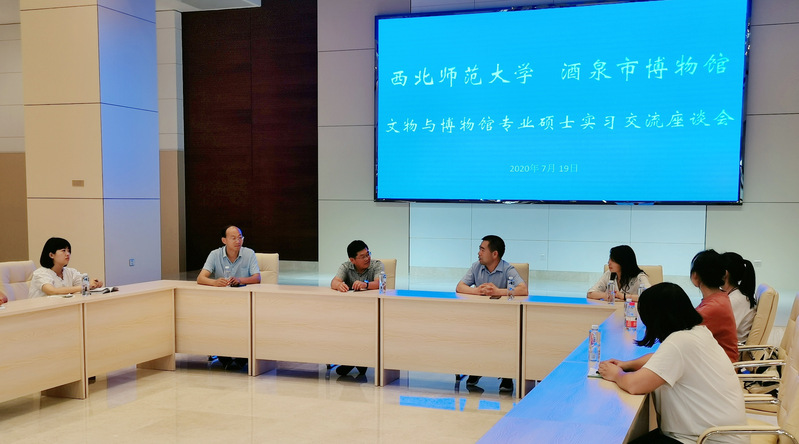 7月19日下午,师生到达酒泉市博物馆,在馆长王杰元、副馆长王锋朝的陪同下参观了馆内陈列,其后进行了交流座谈,讨论实习相关事宜。双方表示,今年4188云顶集团首次派遣实习生至酒泉市博物馆实习,希望双方重视合作,今后加强交流,为长期合作奠定良好基础。