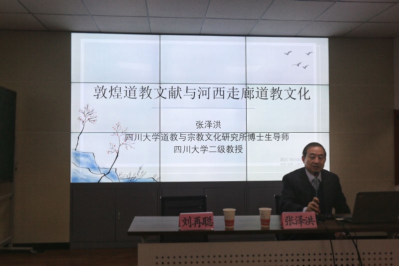 2020年11月17日,应西北师范大学河西走廊研究院邀请,四川大学教授、博士生导师、《宗教学研究》常务副主编张泽洪来我校参加河西走廊论坛,在田家炳教育书院317报告厅作了题为“敦煌道教文献与河西走廊道教文化”的学术报告。报告由河西走廊研究院常务副院长教授刘再聪主持,张玉霞、李顺庆、张嵘、秦丙坤、陶兴华、陈来虎老师及博士硕士研究生100余人参加了报告会。