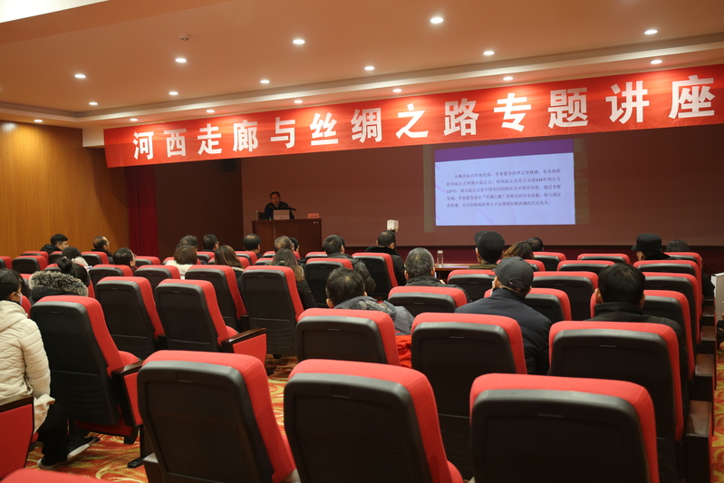 2020年12月26日,古浪县文旅局举行“河西走廊与丝绸之路”专题讲座。我院刘再聪教授、高启安教授(文博专硕实践指导导师)应邀分别作题为《丝绸之路长城文明与古浪文化遗产》、《汉魏河西食生产三题:汲水、狩猎、捕鱼》的专题报告。讲座由古浪县博物馆馆长张兴慧主持,古浪县文博系统员工80余人参加了讲座。