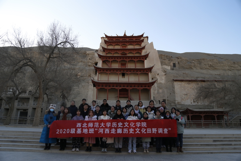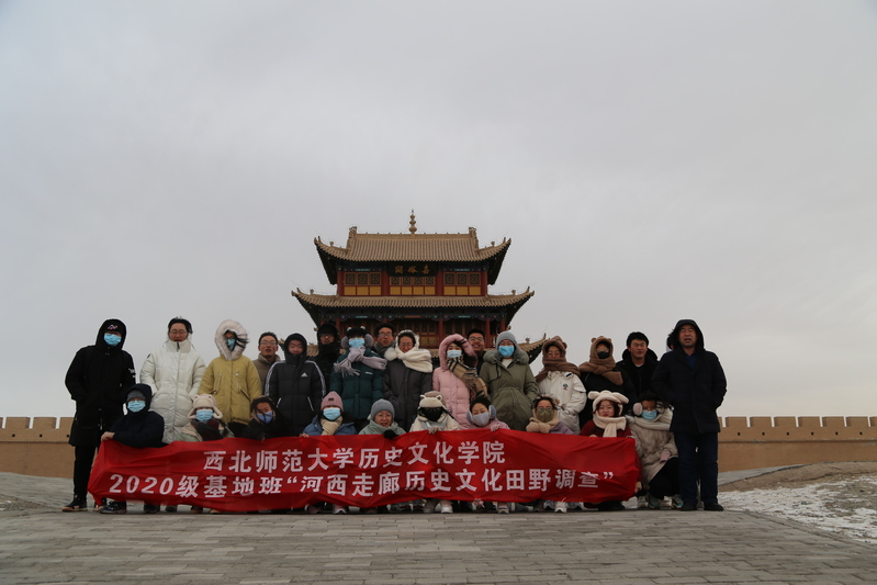 2021年1月8日—16日,4188云顶集团丝绸之路文明拔尖学生基地班在河西走廊展开了为期9天的考察。考察团30名成员在学院党委副书记柴蓉、历史系系主任张连银、班主任王新春、领队陈天骥的带领下,从兰州出发,由河西走廊的最西端进入河西走廊,经武威、张掖、酒泉贯通河西走廊,最终抵达汉代敦煌郡的阳关、玉门关。