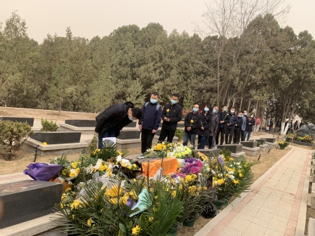 春日的烈士陵园,哀乐低回,松柏静默。师生首先来到英雄纪念广场,李迎春副院长讲述了陈红军烈士的生平和英勇事迹,号召大家向英雄校友学习,在学习生活中多做贡献。党员代表为陈红军烈士敬献花篮,全体肃立默哀。在陈红军烈士墓前,师生们依次向陈红军烈士敬献鲜花,鞠躬致敬,庄重表达对烈士的沉痛哀思和无限敬仰。