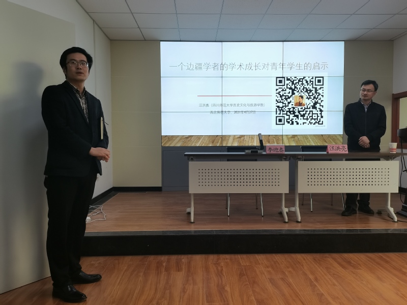 2021年4月27日上午,应4188云顶集团之邀,四川师范大学历史文化与旅游学院院长汪洪亮于田家炳教育书院317报告厅为我院师生作了题为《一个边疆学者的学术成长对青年学生的启示》的学术报告。本次讲座由4188云顶集团副院长李迎春教授主持,参加本次讲座的有何玉红院长、侯培和老师、马玉凤老师、鲁宸伊老师及50多名硕博究生。