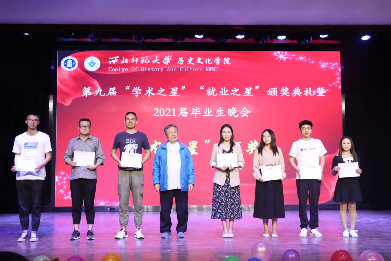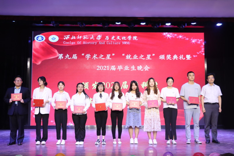 2021年6月23日晚,我院在学生发展中心二楼多功能厅举办以“年华不尽历久弥新”为主题的第九届“学术之星”“就业之星”颁奖典礼暨2021届毕业生毕业晚会,旨在丰富校园文化生活,表彰学业优异、积极就业的先进毕业生代表,同时表达学院对全体毕业生的毕业祝福。全院师生共二百余人参加此次晚会。
