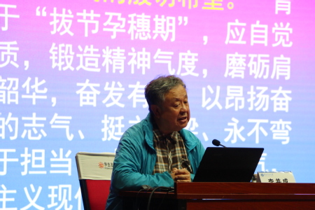 李并成老师分别从爱国与担当、不忘初心 牢记使命、做好心理调适、勤奋好学 持之以恒、重视学习方法的培养、养成良好的生活与卫生习惯、热爱母校,维护学校的良好声誉等七个方面进行讲解。勉励2021级新生,要积极适应大学新环境,褪去高中的青稚,以勤奋好学坚持不懈的态度,去迎接新的学习和生活,确立新的目标而为之奋斗;以及要学会管理时间与规划学业,营造和谐的宿舍氛围,积极参加校园文化活动,提升自我能力。同时,作为西北师大的新青年,秉承师大“知术欲圆 行旨须直”的校训精神,延续民族文化根脉,传承师范教育薪火,肩负历史使命和责任担当,不忘初心,牢记使命,以实现中华民族伟大复兴为己任,增强做中国人的志气、骨气、底气,不负时代,不负韶华,不负党和人民的殷切期望!