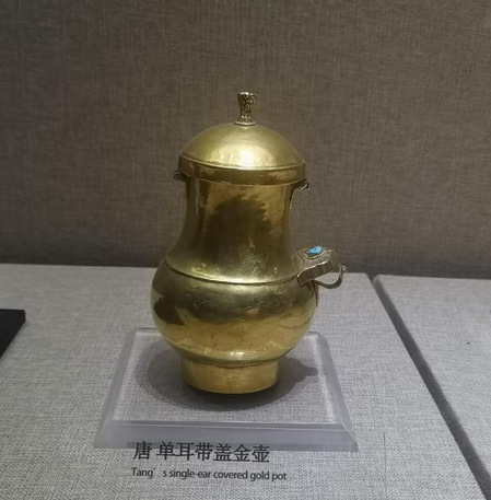 但对我们最有吸引力的还是丝绸之路与青藏高原文明厅。2017年5月14日,中华人民共和国主席习近平出席“一带一路”国际合作高峰论坛并发表主旨演讲。他指出,古丝绸之路沿线地区曾经是“流淌着牛奶与蜂蜜的地方”,随着经济的快速发展,青海也乘着“一带一路国际合作论坛”在北京成功举办的契机,坚持以和平合作、开放包容、互学互鉴、互利共赢为核心的丝路精神,推进青藏高原地区“一带一路”建设行稳致远。而对于唐代来讲,最重要的又莫过于这里著名的高原丝绸之路——青藏道。展厅中安放的唐蕃长庆会盟碑还彰显着当年唐与吐蕃友好交流的见证,同时展厅中还陈列着许多具有浓厚吐蕃风格的金银器,如镶宝石花卉纹三角形银饰片、四王金杯等,不仅体现了吐蕃金银器制作的高超技术,同时也体现了吐蕃与周边国家之间友好交往、共同繁荣的景象,也体现了丝绸之路在这一时期的繁盛发展。丝绸之路是古代中西方商贸和文化交流的重要通路。而作为“唐蕃古道”重要通道的青海道事实成了中西交通的中心之一,使占据此路段的吐蕃商业迅速发展,在中国古代史上扮演了重要角色。如今丝绸之路又焕发新的活力,以新的形式使亚欧非各国联系更紧密,构建全方位开放的新格局,深度融入世界经济体系,谱写建设丝绸之路的新篇章,使沿线各国人民共享“一带一路”共建成果。