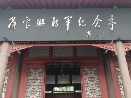 在邓宝珊将军纪念亭中,工作人员向实践队员介绍漆雕信件、邓宝珊将军手迹和生平收藏字画,实践队员了解到邓宝珊将军的文采以及一些鲜明事迹。看着这些将军遗存文物,张琦同学说,随着时代的发展,义务教育水平的提高,历史教育呈现更深层次、更细节化,这点让她十分开心;在中国革命的发展历程中,许多先辈献出了生命,我们要铭记这些事迹,才能明确前进的方向。