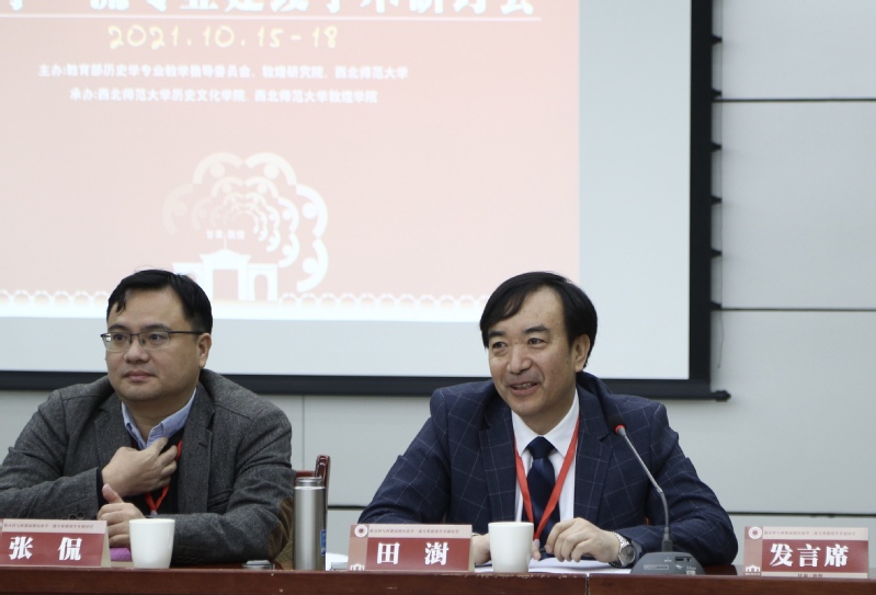 本次会议分为大会报告环节、教育部高教司“课程思政建设”文件传达与分组研讨和“新文科与西部高校历史学一流专业建设”专题研讨三个阶段。大会报告分别由西北师范大学何玉红教授、上海师范大学副校长陈恒教授主持,与会专家就西部高校历史学专业建设存在的问题与趋势、敦煌文化遗产数字保护技术、丝绸之路文明拔尖创新人才培养等方面开展研讨。敦煌研究院俞天秀研究员、教育部历史学类专业教学指导委员会主任、中山大学党委书记陈春声作了主题报告。教育部高教司“课程思政建设”文件传达与分组研讨分别由北京大学王立新教授和教育部历史学类专业教学指导委员会副主任、复旦大学章清教授主持,专家一致认为,作为基础学科的历史学、具有思政育人的重要作用,在具体教学中,应充分挖掘历史知识教学中思政育人的元素,做到知识传授与价值观塑造邮寄融合。教育部历史学类专业教学指导委员会副主任、西北大学陈洪海教授,中山大学历史学系谢湜教授作了专题报告。“新文科与西部高校历史学一流专业建设”专题研讨分别由教育部历史学类专业教学指导委员会副主任、西北大学陈洪海教授和中山大学历史学系谢湜教授主持,北京大学王立新教授、教育部历史学类专业教学指导委员会副主任、复旦大学章清教授作了专题报告,与会专家围绕思路文化遗产与历史学教学改革、数字化背景下的历史学一流专业建设、新文科背景下的历史学本科教材建设等问题展开了深入研讨。