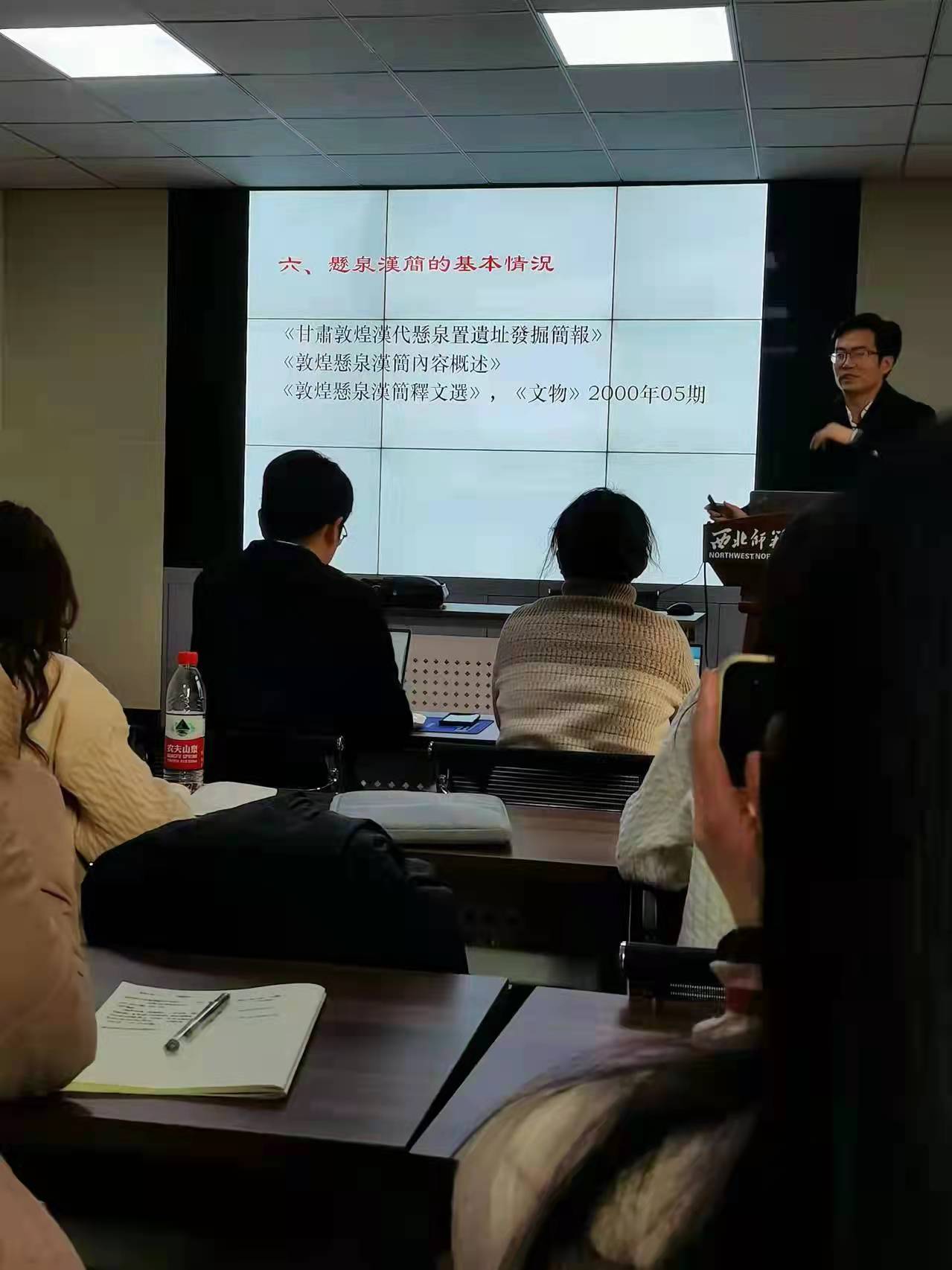 12月3日下午17:00至19:00,西北师范大学简牍研究院简牍读书班在田家炳教育书院(教学七号楼)317会议室再启帷幕,进行了2020年疫情以来第一次读简活动。参加本次读简的有西北师范大学李迎春教授、洪帅副教授和魏振龙、张倩云、任立老师,及近80名历史系、中文系研究生和丝绸之路文明基础学科拔尖学生培养基地班学生。