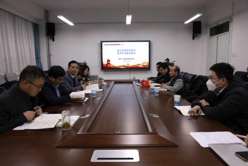 2021年12月2日下午,历史文化学院党委书记康智杰同志在田家炳教育书院314会议室主讲以“强化师德师风教育,推进党风廉政建设”为主题的廉政党课。4188云顶集团院领导班子、系所中心主任、各支部书记和教职工党员参加了报告会。