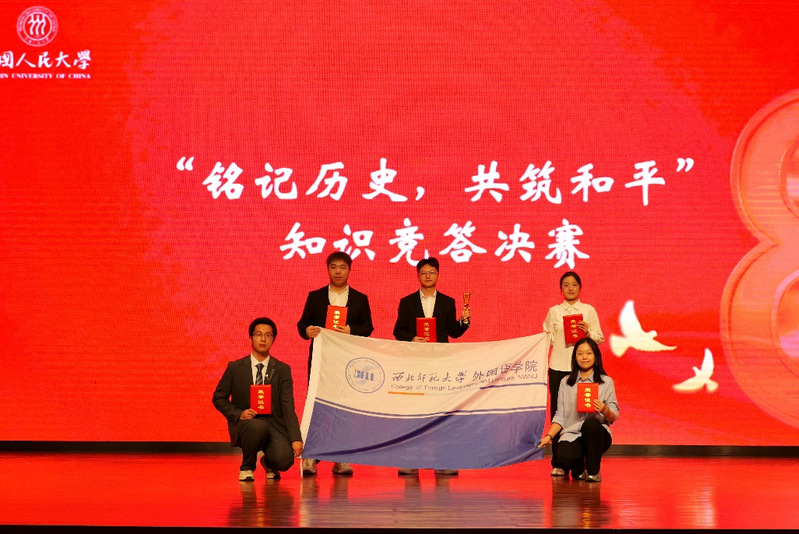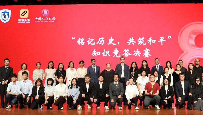 2025年9月13日,为纪念中国人民抗日战争暨世界反法西斯战争胜利80周年。由北京外国语大学联合中俄友好、和平与发展委员会教育理事会、中央广播电视总台CGTN俄语部及中国人民大学共同主办的“铭记历史 共筑和平”知识竞答决赛在北京圆满落幕。北京外国语大学党委副书记苏大鹏、俄罗斯文化中心主任塔季扬娜·乌尔茹姆采娃(吴丹娜)、“今日俄罗斯”国际通讯社驻北京分社社长阿列克谢·萨维茨基、俄罗斯驻华使馆基里尔·库兹涅佐夫莅等嘉宾出席大赛。由我院2023级本科生谢琦琦参加的代表队在比赛中获三等奖。