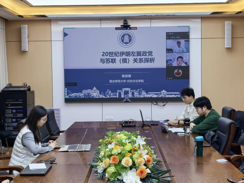 首先,陈政祺同学汇报了学术论文《20世纪伊朗左翼政党与苏联(俄)关系探析》。他系统梳理了伊朗左翼政党与苏联(俄)近一个世纪的关系演变历程,并指出,深入探究这一历史进程能够为理解全球左翼运动及第三世界共产主义斗争提供重要的经验与启示。随后,杨鹏飞、杨玉龙、吕海军三位老师对论文进行了评议。他们在肯定该研究学术价值的基础上,分别就摘要凝练度、选题聚焦与史料运用、以及论文结构框架 等方面提出了建设性意见。