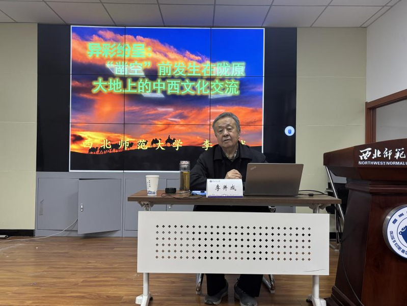 2025年11月6日下午,研究员、博士生导师李并成先生在田家炳教育书院317教室作题为《异彩纷呈:“凿空”前发生在陇原大地上的东西文化交流交融》的专题讲座。本次讲座由学院梁姗姗副教授主持,学院陶兴华、连菊霞、郭妙妙等三位老师及六十余名同学参加。