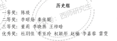 陈琰同学荣获历史组一等奖;