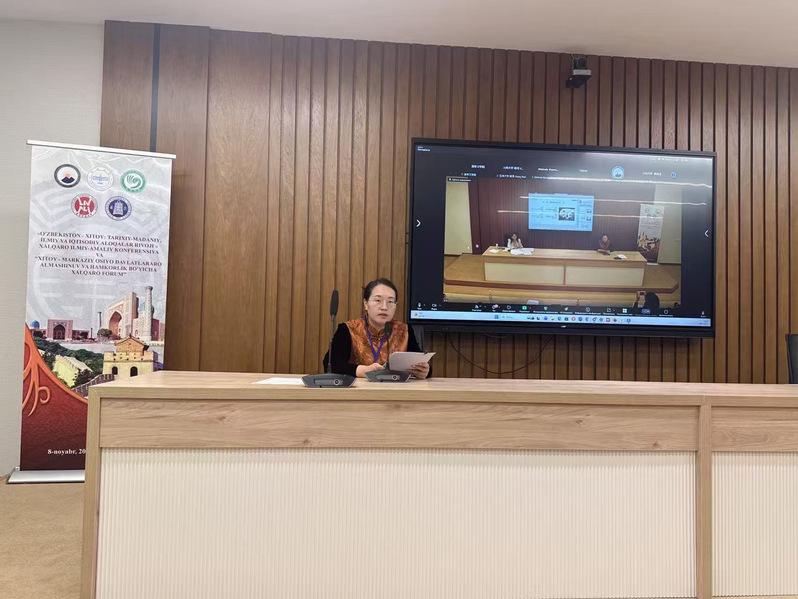 论坛期间,三位教师围绕中亚历史文化与人文交流主题分别作学术报告。马玉凤老师在开幕仪式上介绍了《乌兹别克斯坦常用法律》中文版的概况。该译本作为“中亚国家法律文本翻译丛书”第三卷,涵盖11部乌国常用法律文本,是我校服务“一带一路”法治保障的具体举措,可为中方各界了解乌国法律、企业赴乌投资合作提供参考,助力中乌法律互鉴与友好合作。此外,她还以《聚焦和跨越——中国中亚国家人文交流的时代命题》为题发言,围绕新时代中国与中亚人文交流的核心任务与发展路径展开探讨,为推动区域文明对话与务实合作贡献了新思路。