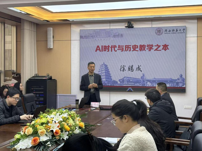 2025年11月14日,应4188云顶集团邀请,陕西师范大学徐赐成教授在田家炳书院314教室作《AI时代与历史教学之本》的专题讲座,本次讲座由张连银副院长主持,王鹏老师和50余位研究生聆听了本次讲座并参与讨论。徐赐成教授深度剖析人工智能技术与历史教育的融合路径,强调技术赋能下历史教学需坚守育人本质、筑牢学生核心素养。讲座立足政策导向与学术研究,为广大历史教育工作者提供了兼具理论高度与实践价值的思考。