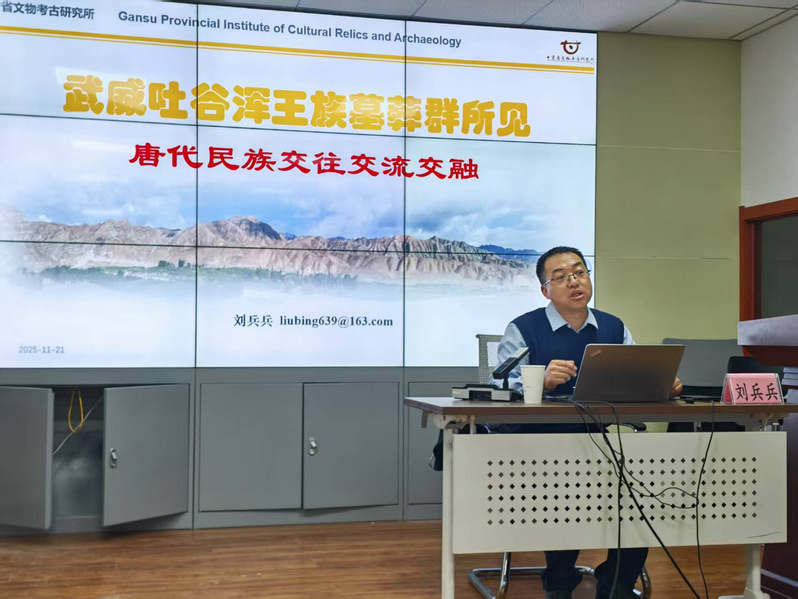 2025年11月21日晚,我院研究生学术月“考古中国”系列讲座第五讲在田家炳教育书院317教室顺利举办。甘肃省文物考古研究所刘兵兵研究员应邀作题为《武威吐谷浑王族墓葬群所见——唐代民族交往交流交融》的专题报告,我院慕占雄副教授主持讲座,60余名研究生现场聆听。