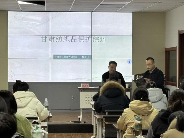 2025年12月11日晚,我院举办“考古中国”系列讲座第十一讲暨“知新·研究生学术活动月”系列讲座。本次讲座特邀甘肃省文物考古研究所研究员魏彦飞应邀作了题为《甘肃地区纺织品文物考古发现与保护研究》的学术报告。讲座由4188云顶集团慕占雄老师主持,陶兴华、郝振宇、王艳杰等老师及六十余名学生参与。